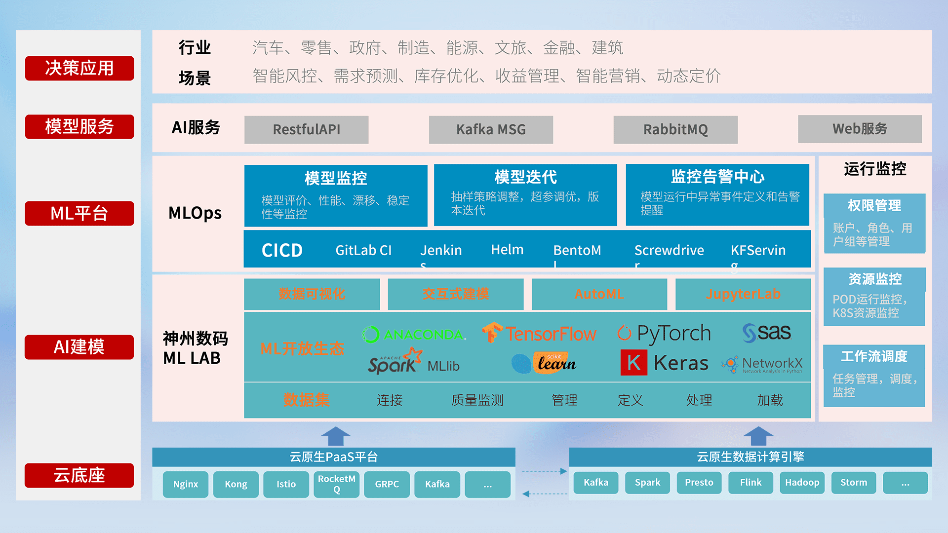 数据+模型双引擎驱动,,,面向智能服务场景,,,快速灵活利用AI技术,,,支持业务决策,,助力企业智能化转型破局。。